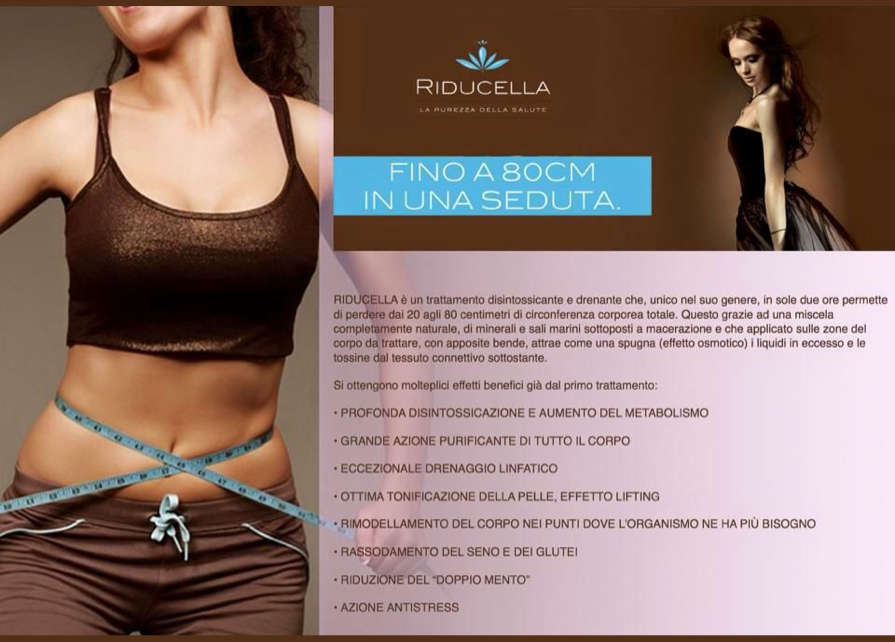 RIDUCELLA è un trattamento realizzato con ingre- dienti assolutamente puri e naturali ideato più di 50 anni fà dal medico tedesco Gustav Glatt e continuamente migliorato ed arricchito attraverso la sperimentazione di ricercatori e specialisti che lo hanno perfezionato, brevettato e reso unico per efficacia e prestazioni. È questo che fa la differen- za rispetto agli altri nuovi trattameni in circolazio- ne, che ne costituiscono una pallida imitazione.